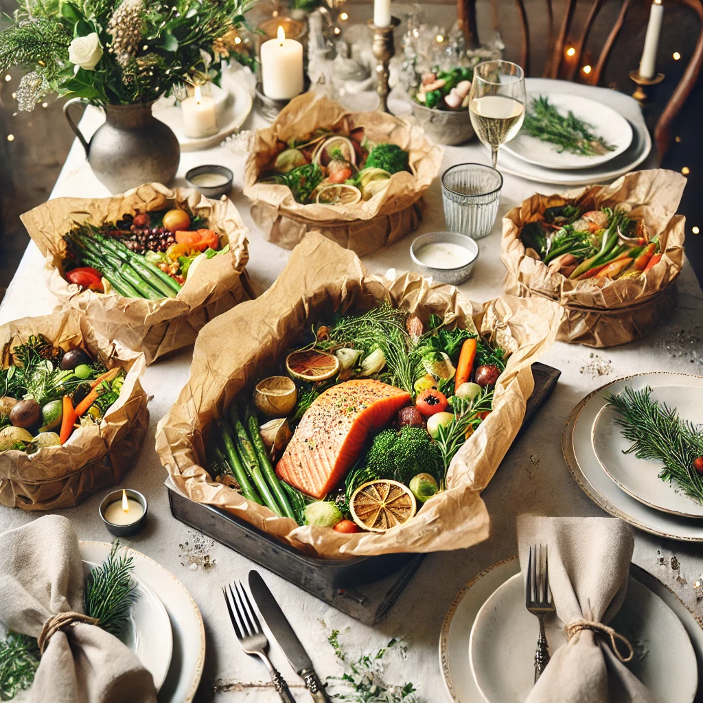 - Papillote의 간단한 조리법과 화려한 풍미를 강조할 수 있는 장식으로 테이블을 꾸며보세요.